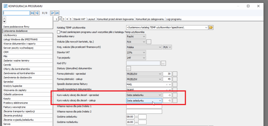 11. Konfiguracja – Kurs waluty dla zleceń rozdzielono na: