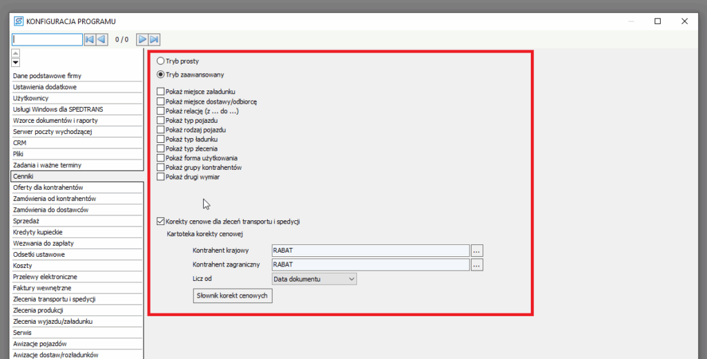 13. Cenniki – tryb zaawansowany. Dodano kolejne cechy, na podstawie których można definiować cennnik.