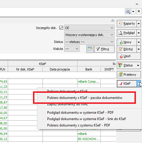 – Dodano również możliwość pobrania oryginalnych dokumentów kosztowych z KSeF