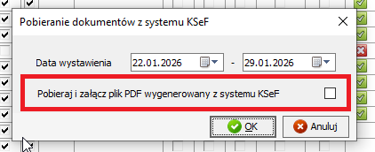 – Pobieraj dokumenty kosztowe dla kontrahentów tylko z bazy kontrahentów (jeśli w kartotece kontrahenta zaznaczona opcja “Pobieraj dokumenty kosztowe z KSeF”)