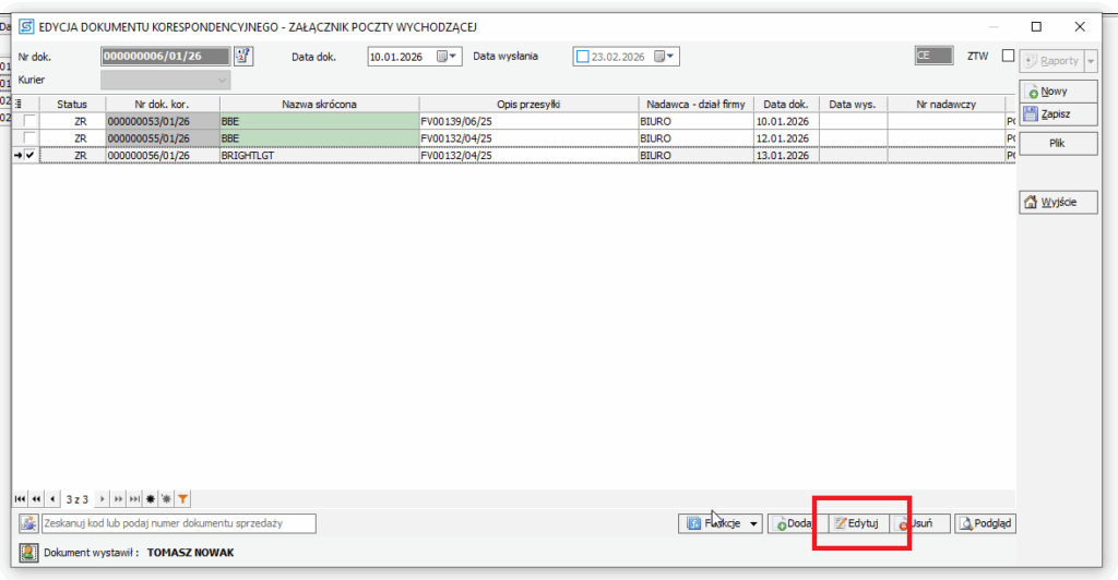 24. Dodano możliwość szybkiej edycji dokumenty korespondencji wychodzącej z pozycji edycji Załącznika korespondencji wychodzącej.