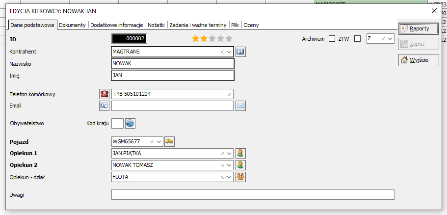 8. Dodano przenoszenie się wspólnych danych między kartoteką kierowcy i pracownika.