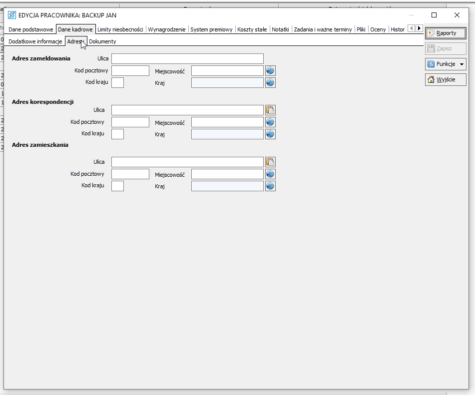 7. Kartoteka pracownika – uporządkowano układ danych zakładki Dane kadrowe – podzielono dane na zakładki: