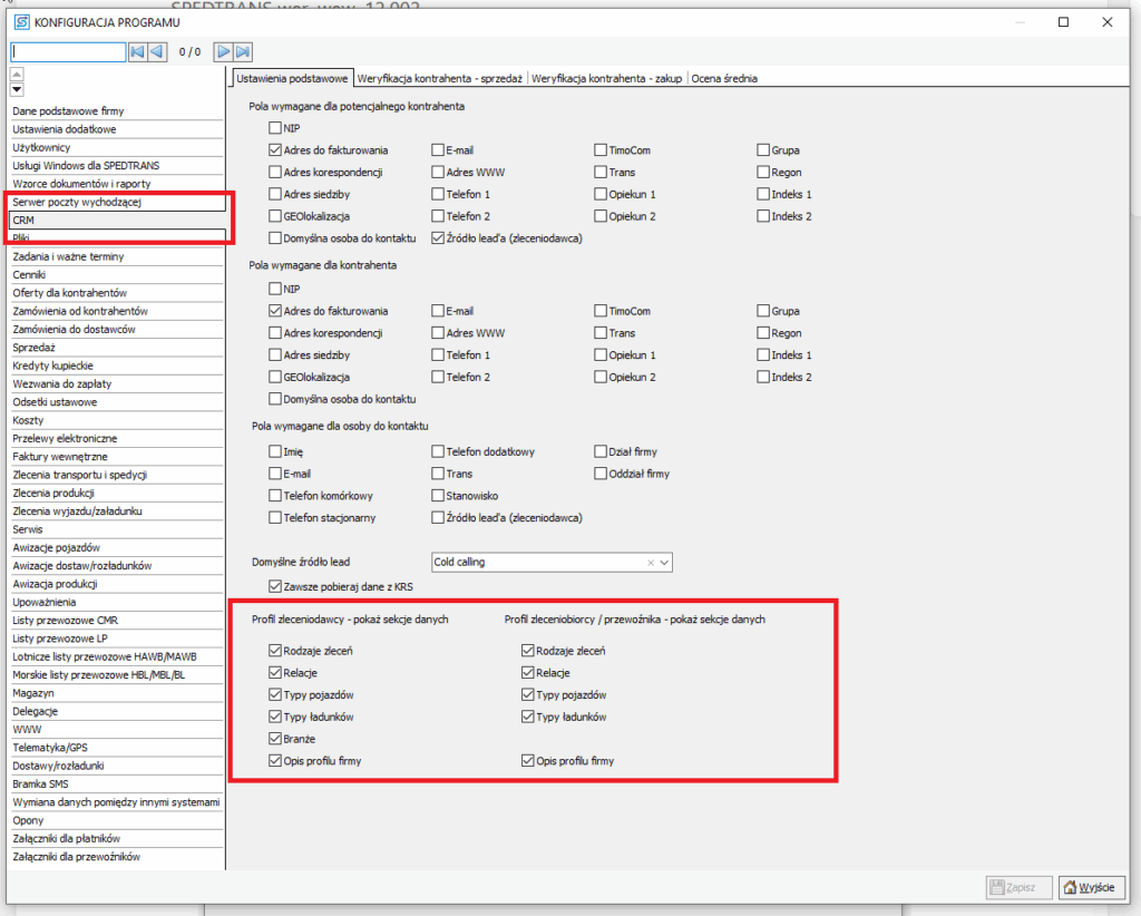 9. Dodano możliwość ukrycia wybranych sekcji danych z profilu zleceniodawcy oraz przewoźnika.