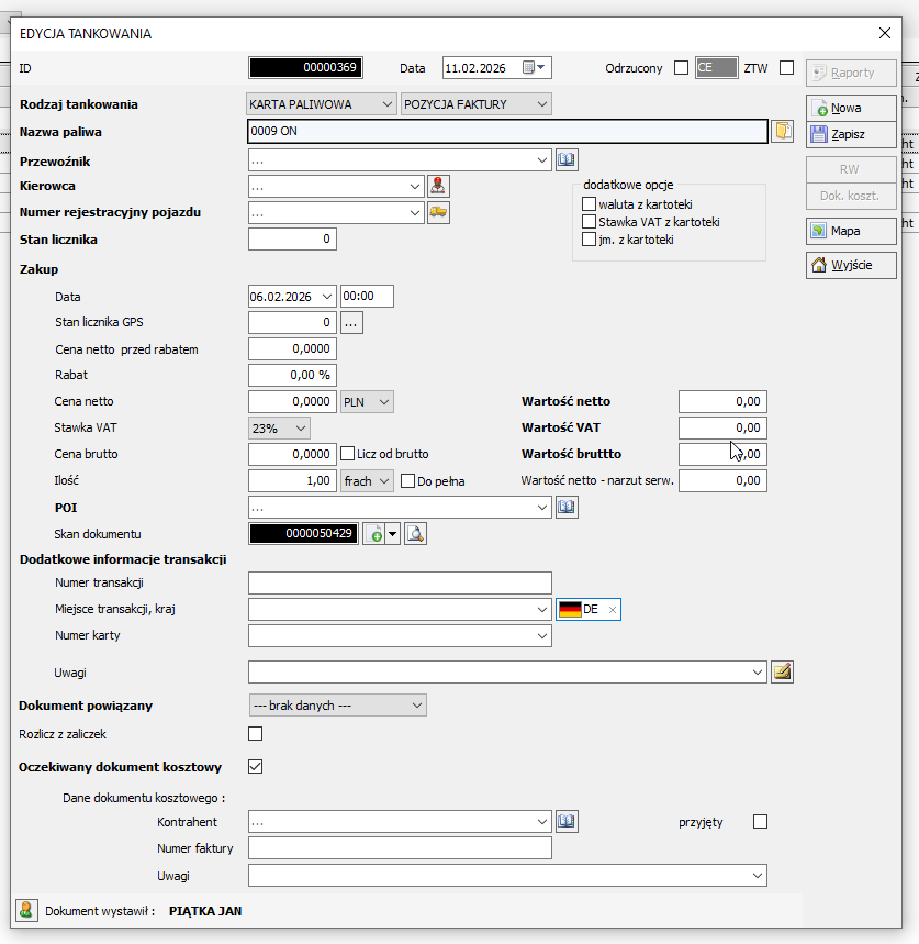Dodano możliwość podania Domyślnego rodzaju pliku do dokumentu tankowań.