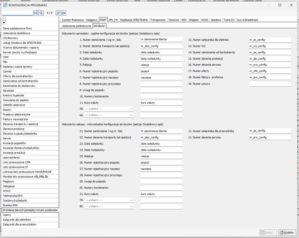 Jak skonfigurować atrybuty w programie SPEDTRANS #