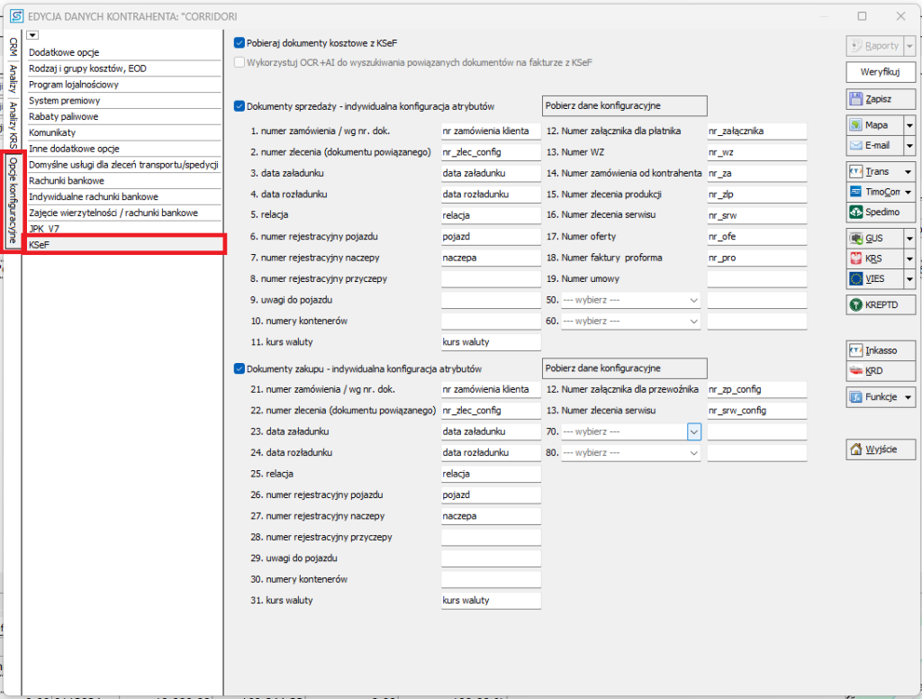 Atrybuty są wymagane do automatycznego powiązania pobranej faktury od klienta ze zleceniem transportu lub spedycji.