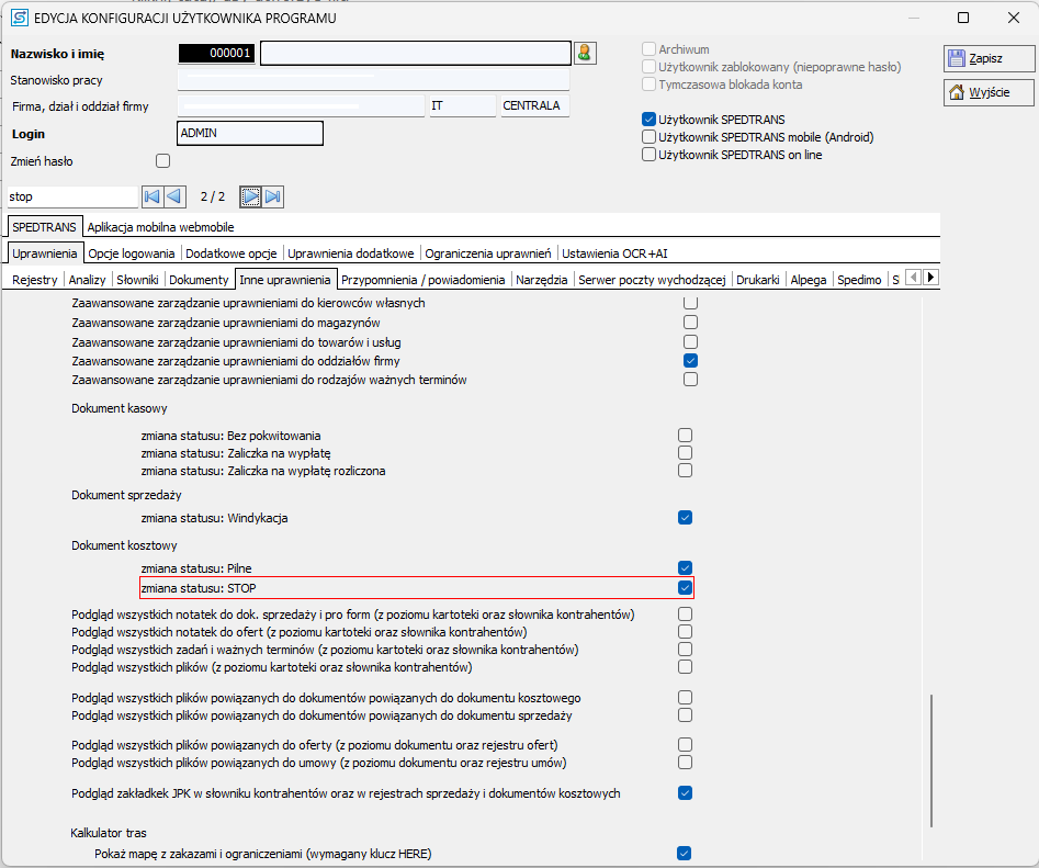 Aby umożliwić modyfikację wskazanych checkboxów, należy nadać odpowiednie uprawnienia. W tym celu wykonaj następujące kroki: