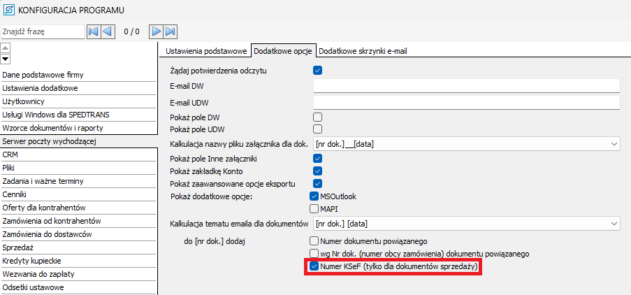 W programie została wprowadzona możliwość automatycznego dodania numeru KSeF do tematu wiadomości e-mail podczas wysyłania dokumentów sprzedaży.