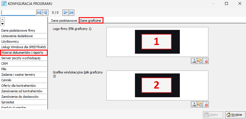 W zakładce Dane graficzne można dodać logo, które będzie widoczne na wydrukach.