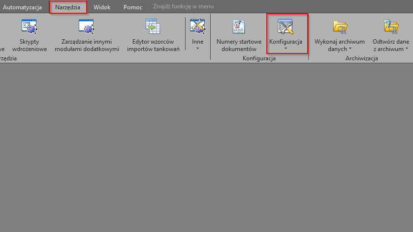 1. Wejdź w zakładkę Narzędzia i kliknij Konfiguracja
