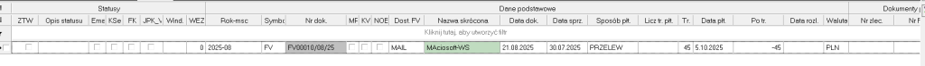 8. Kliknij przycisk Zapisz i w rejestrze sprzedaży pojawi się nowa faktura powiązana z załącznikiem.