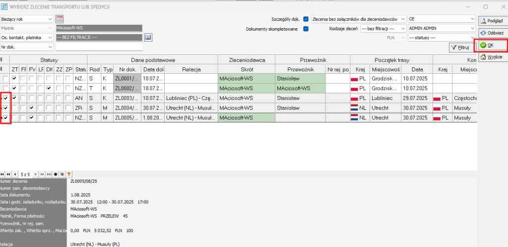 5. Wybierz interesujące zlecenie i kliknij OK