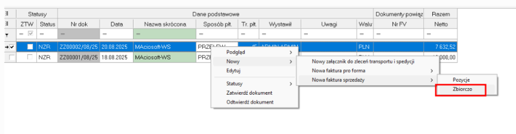 Faktura zbiorcza do zleceń za pomocą załącznika