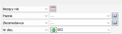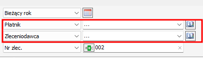 Pola płatnik i zleceniodawca pozostawione są puste a do pola nr zlecenia wpisane jest wartość 002. Po przyciśnięciu przycisku filtruj wyświetlone zostaną rekordy spełniające te kryteria.