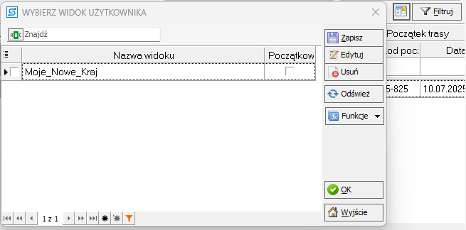 Użytkownik może po ustawieniu filtrów dokonać zapisu tego ustawienia jako widoku użytkownika. Użytkownik może zapisać sobie kilka różnych widoków użytkownika.