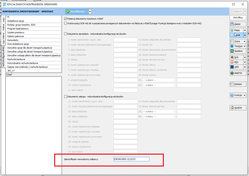 W programie SPEDTRANS jest funkcjonalność związana z integracją z KSeF – Identyfikator wewnętrzny odbiorcy.
