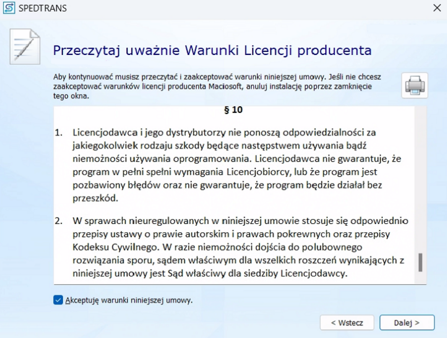 Jednym z kroków jest Zapoznanie się i akceptacja Warunków licencji producenta