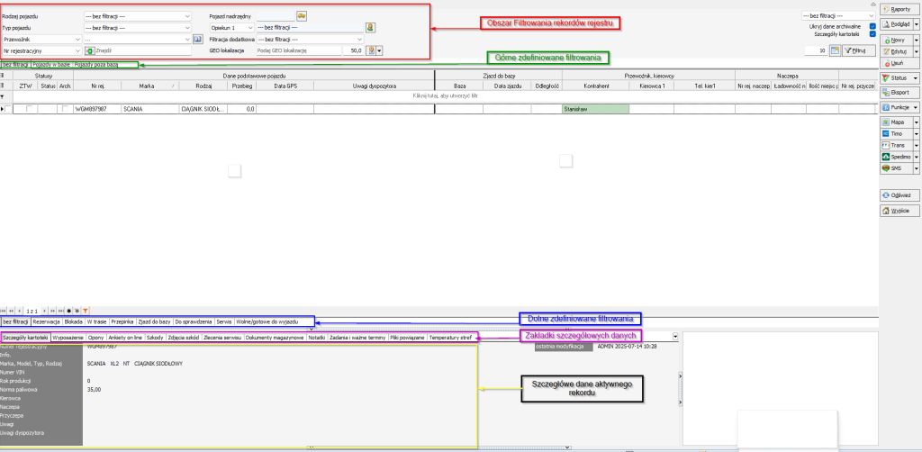 - Obszar Filtrowania rekordów rejestru