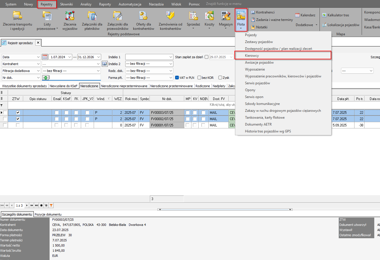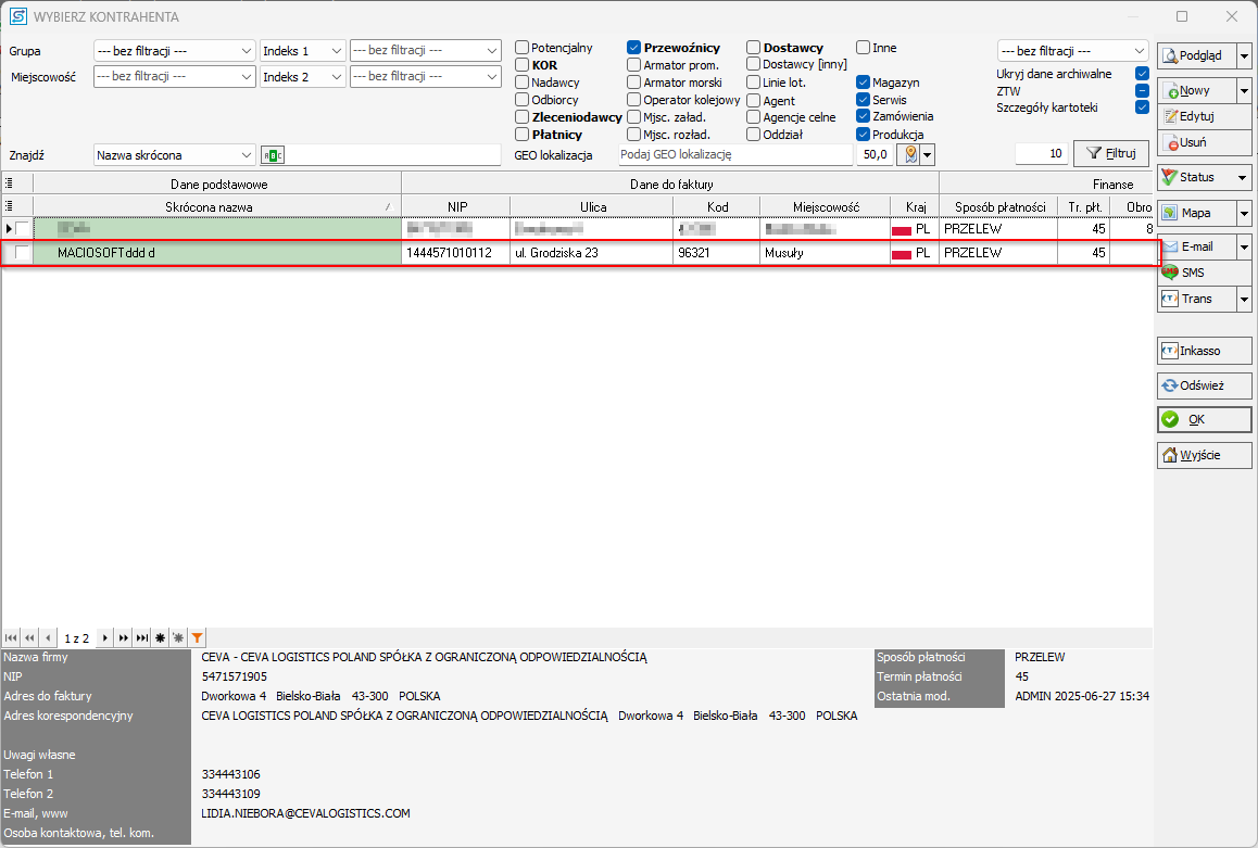 - Wybierz kontrahenta z listy