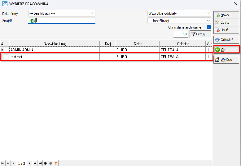 - Wybierz pracownika, którego chcesz przypisać jako kierowcę