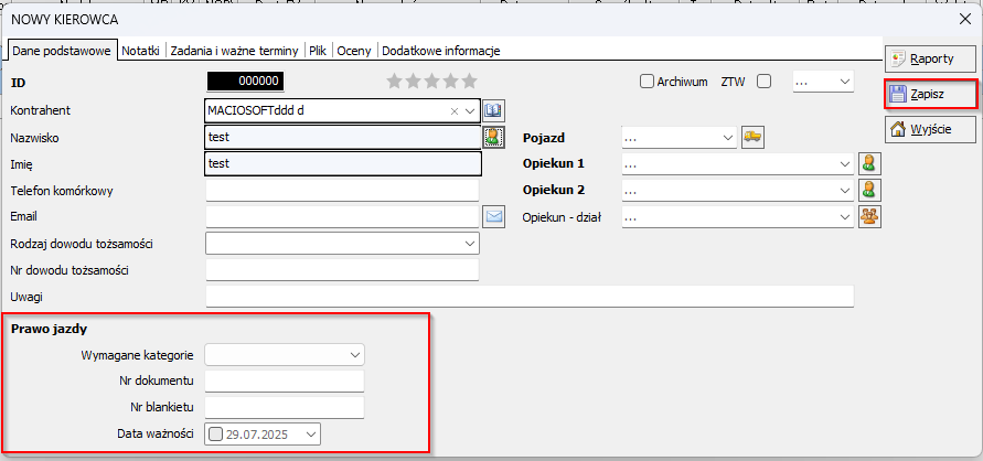 Dodanie nowego kierowcy w rejestrze Flota: #