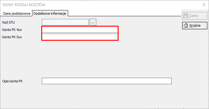 - Wpisz odpowiednie Konto FK i zapisz kartotekę.