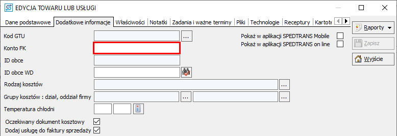 Niektóre programy księgowe udostępniają identyfikatory rodzajów usług. W takim przypadku może okazać się konieczne przypisanie tych numerów do usług w programie Spedtrans.