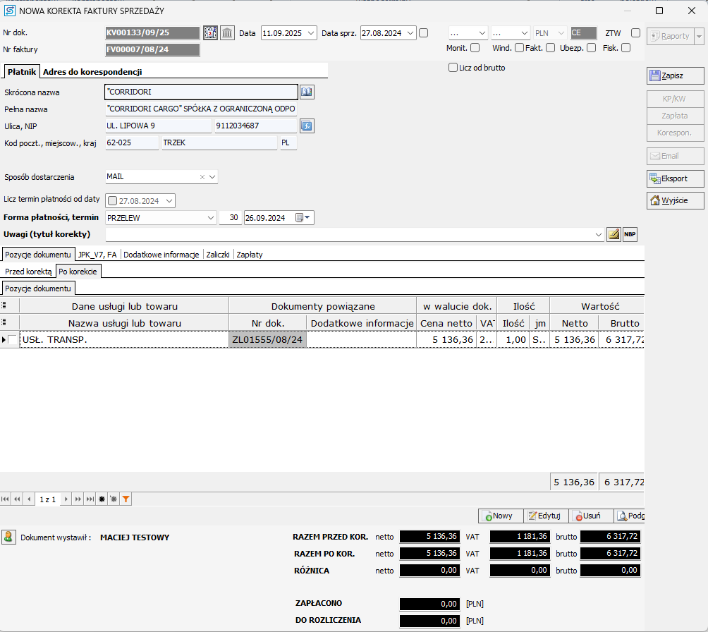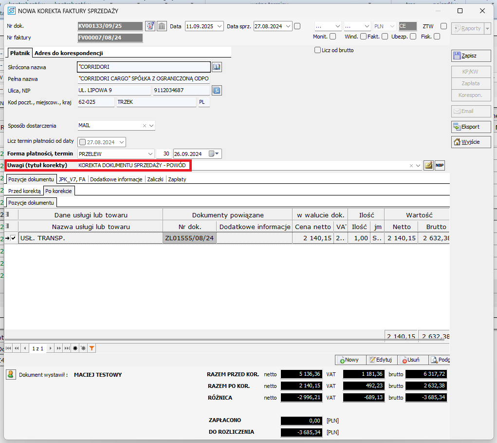 Należy pamiętać, że korekta dokumentu sprzedaży nie pozwala na zmianę wszystkich danych. W szczególności: