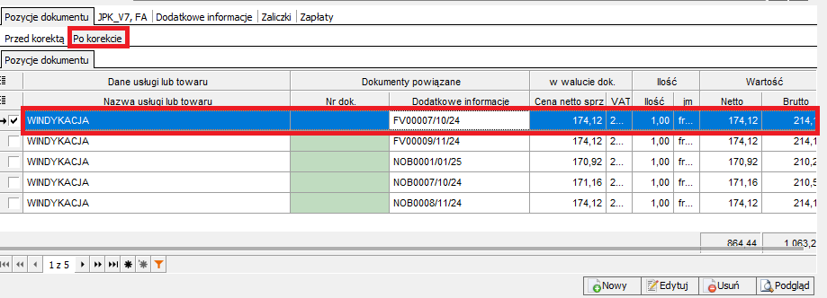 4. W zakładce Po korekcie > wybierz pozycje którą chcesz skorygować.