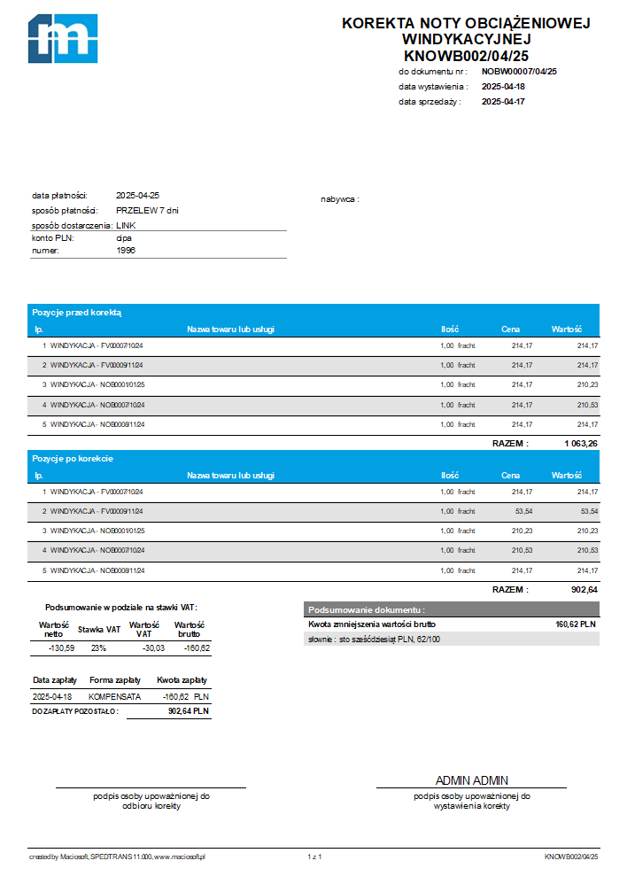 Jak wystawić korektę noty obciążeniowej windykacyjnej (KNOBW).