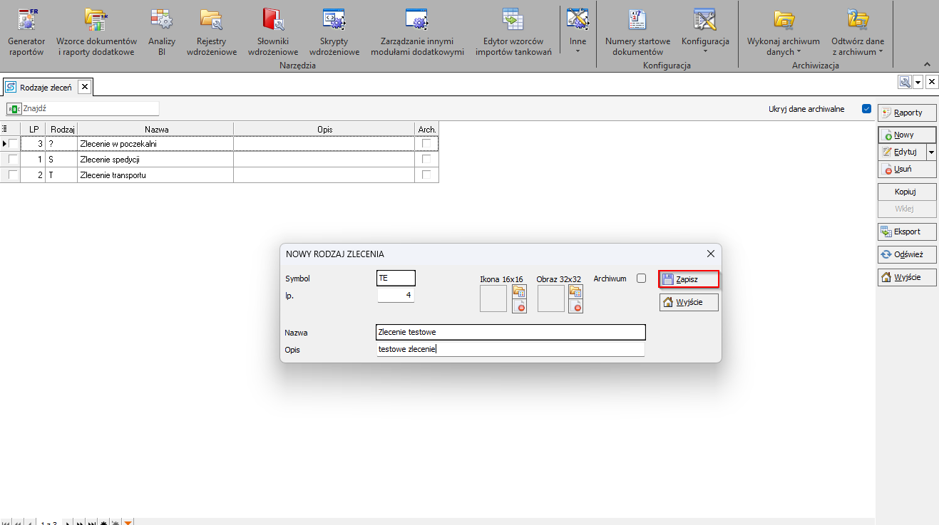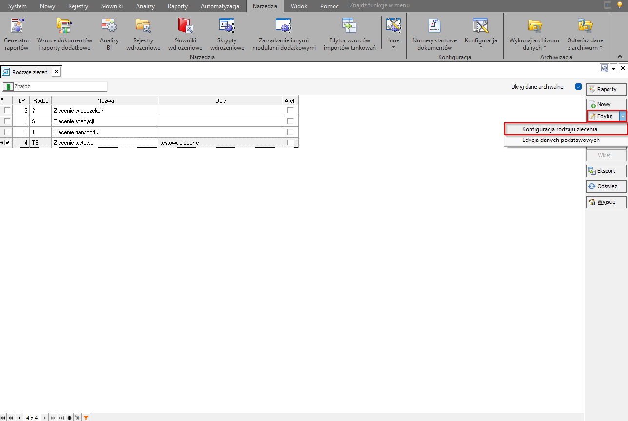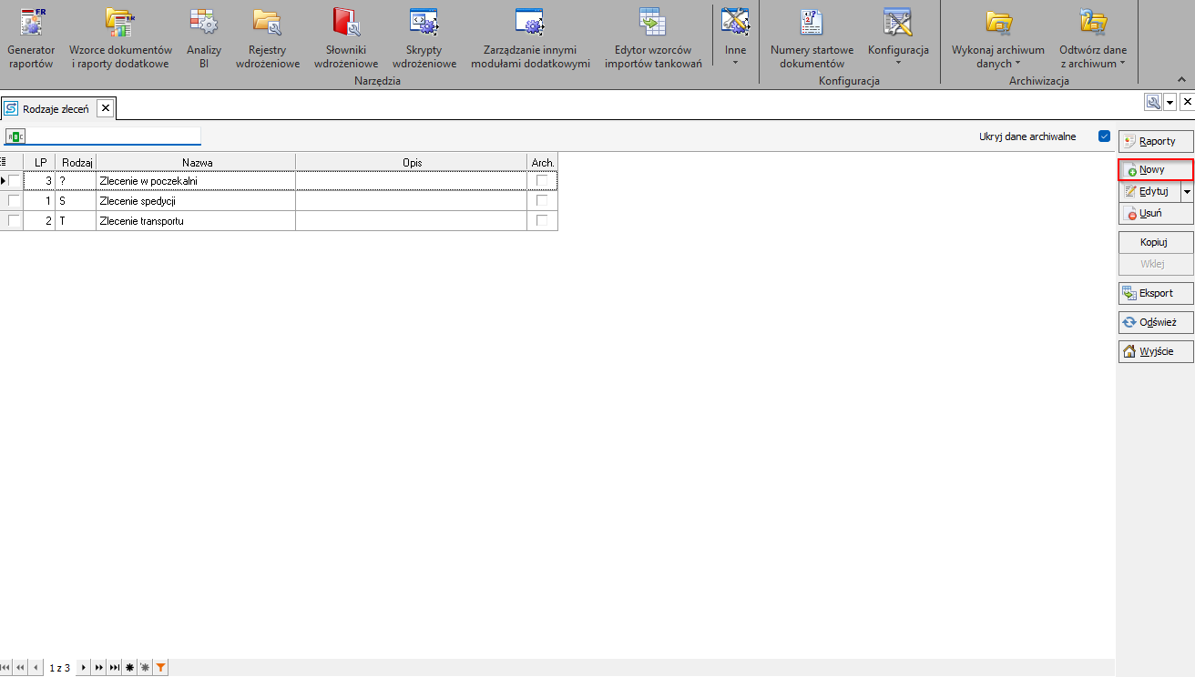 Dodawanie nowego rodzaju zlecenia w SPEDTRANS #