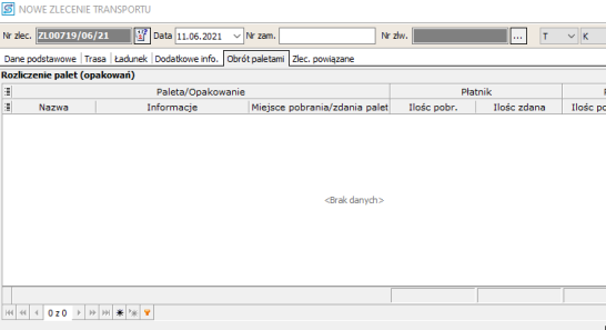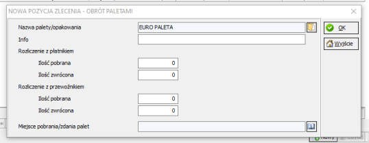 9. Zapisz: Można wprowadzić dowolnie dużo wymian palet do danego zlecenia.