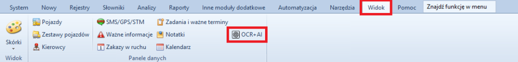 - Wybierz w panelu bocznym zakładkę OCR+AI – koszty (By włączyć panel boczny OCR+AI wejdź w zakładkę Widok i wybierz wymaganą ikonę)