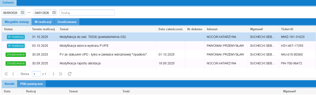 - Dostęp do realizowanych zadań – możliwość podglądu bieżących spraw, statusów i terminów realizacji