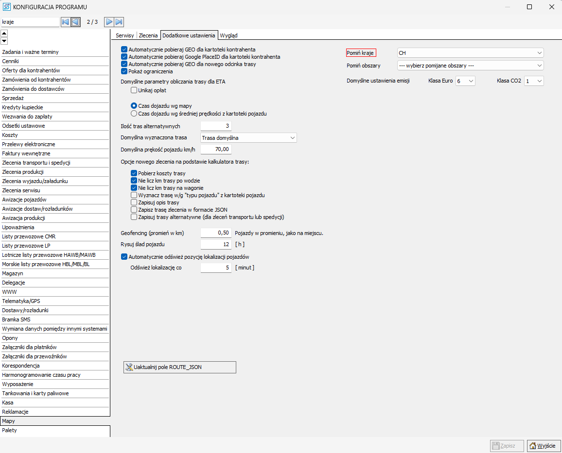 - W polu Pomiń kraje wybierz kod kraju, który ma być pomijany przy wyznaczaniu trasy (np. dla Szwajcarii wpisz