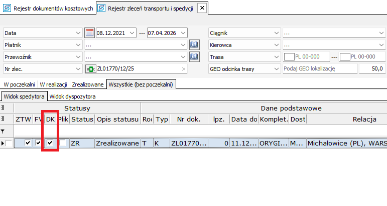 2. Wybierz odpowiednie zlecenie (pamiętaj, że musi być zatwierdzone) i zapisz dokument.