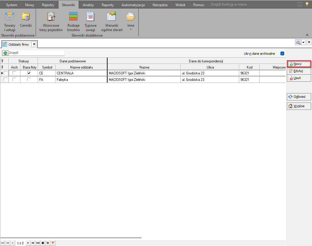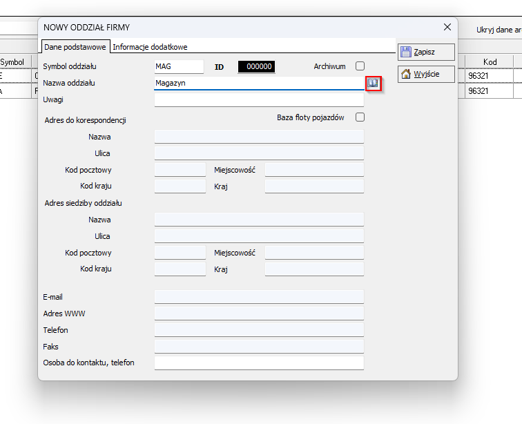 Jak dodać dział/oddział: