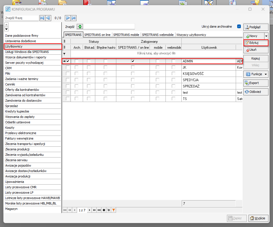 - Otwórz zakładkę SPEDTRANS