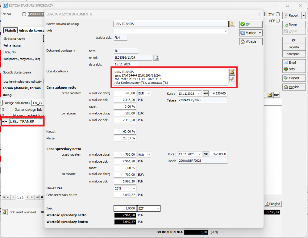 Przenoszenie danych ze zlecenia do pola „Opis dodatkowy” w dokumentach sprzedaży / fakturach