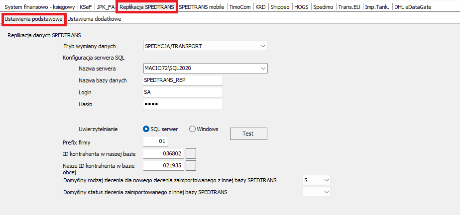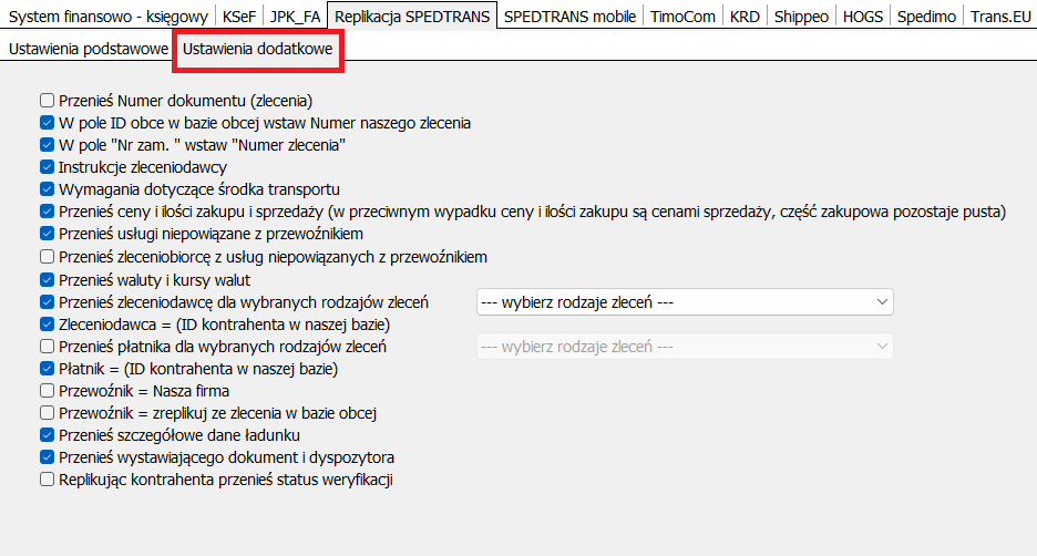 - Przejdź do zakładki “Replikacja SPEDTRANS”