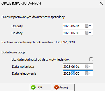 - Okres importowanych dokumentów sprzedaży (liczony od daty wystawienia dokumentu w programie spedycyjnym)