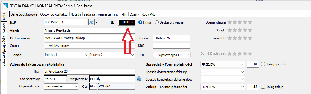 - Płatnik = (ID kontrahenta w naszej bazie)