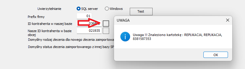 - Po wpisaniu odpowiednich ID kliknij kwadracik, w ten sposób sprawdzimy czy w bazie istnieje odpowiedni kontrahent