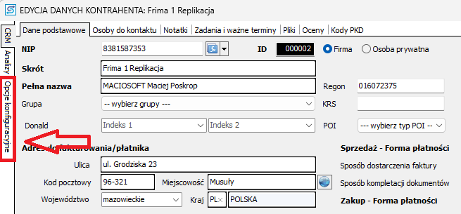 - Przechodzimy do zakładki Opcje konfiguracyjne