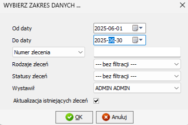 - Statusy zleceń importujemy zlecenia o konkretnym statusie