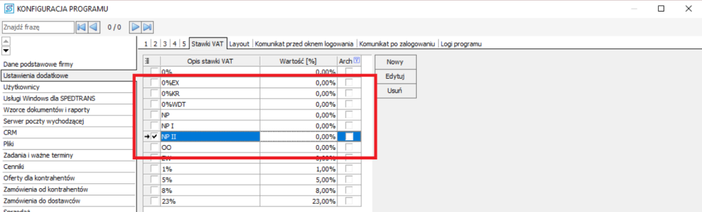 Dodawanie nowych stawek VAT #