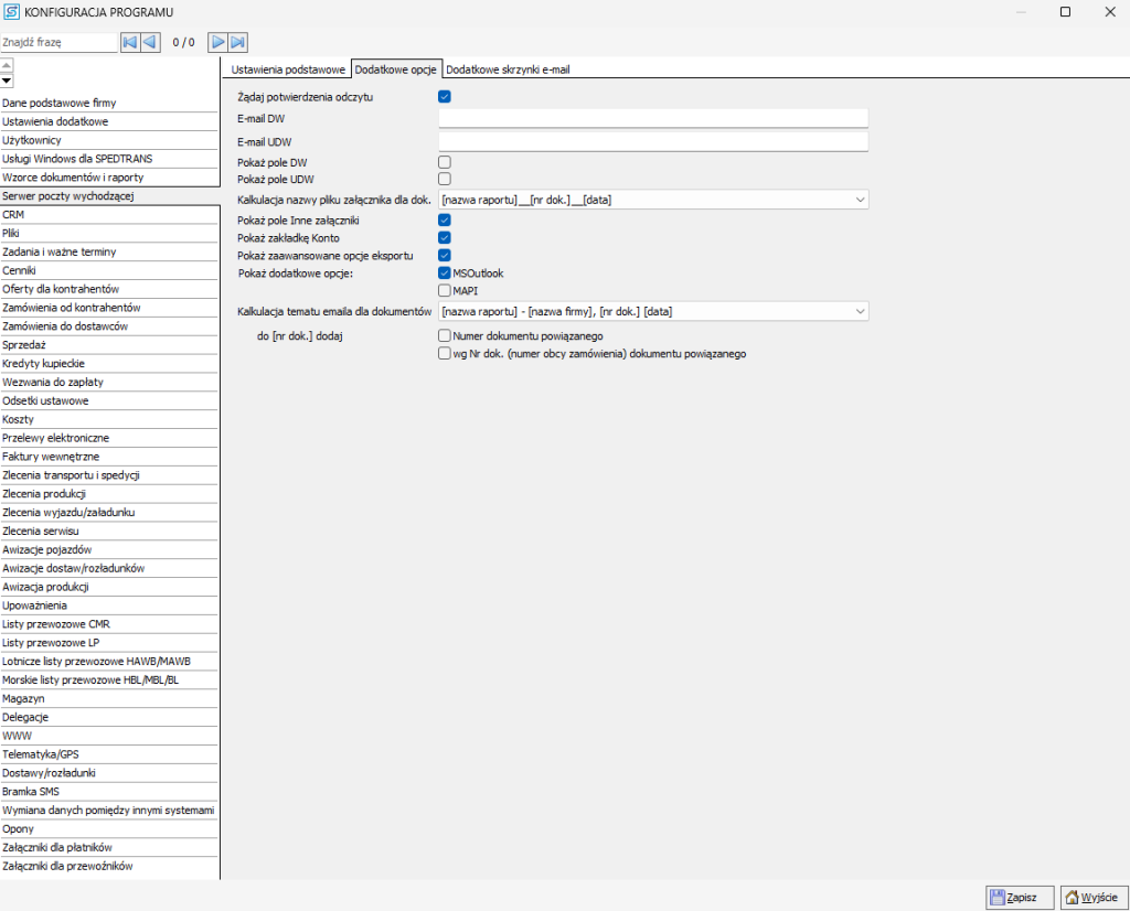- możliwość ustawienia standardu nazwy teamtu maila dla dokumentów, np. [nazwa raportu] – [nazwa firmy], [nr dok.] [data]