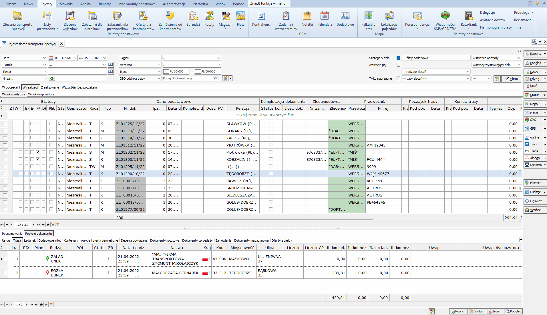 1. Przejdź do Rejestry > Zlecenia transportu i spedycji.