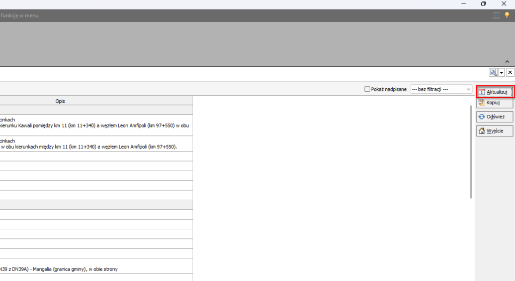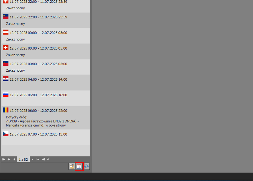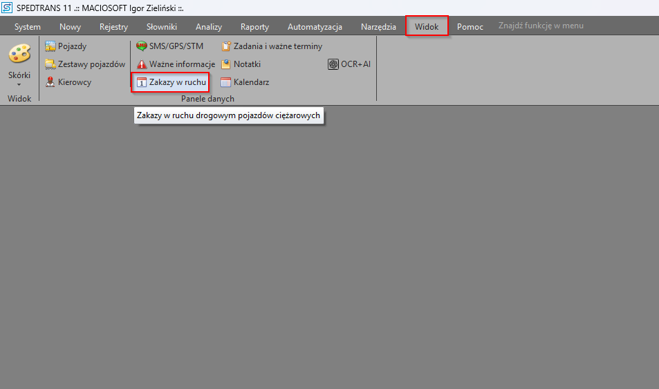 Program wyposażony jest w funkcjonalność umożliwiającą pobieranie oraz prezentację obowiązujących zakazów ruchu dla pojazdów ciężarowych. Rozwiązanie to pozwala użytkownikom na bieżąco monitorować ograniczenia drogowe, co znacząco wpływa na efektywność planowania tras oraz zgodność działań transportowych z obowiązującymi przepisami